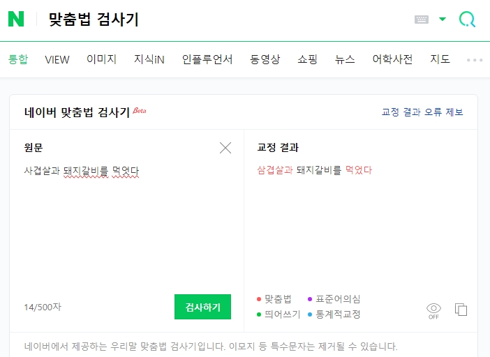 네이버 한글 맞춤법 띄어쓰기 검사기